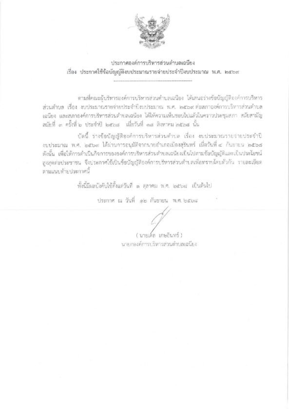 ประกาศใช้ข้อบัญญัติงบประมาณรายจ่าย ปีพ.ศ.2569