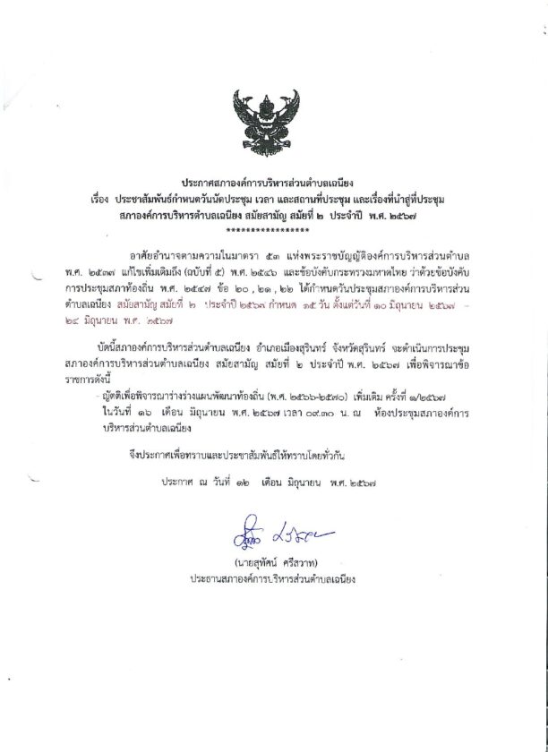 ประกาศ ประชุมสภา สมัยสามัญ สมัยที่ 2 ประจำปี 2567