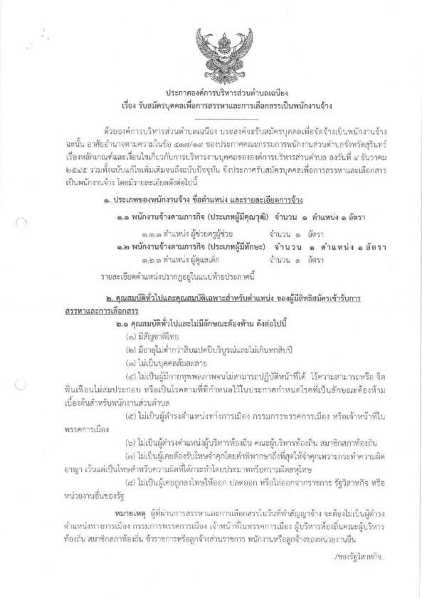 ประกาศรับสมัครบุคคลเพื่อการสรรหาและเลือกสรร
