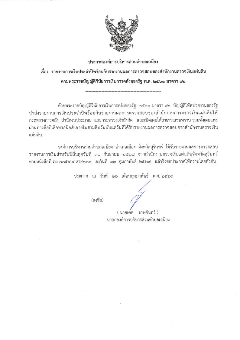 ประกาศเรื่องรายงานการเงินประจำปี พ.ศ. 2568