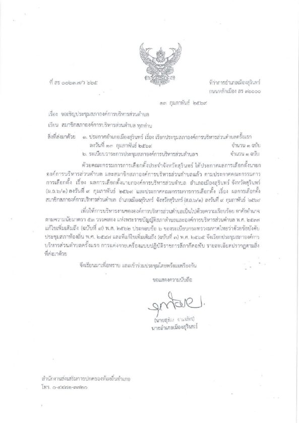 หนังสือเชิญประชุมสภาครั้งแรก